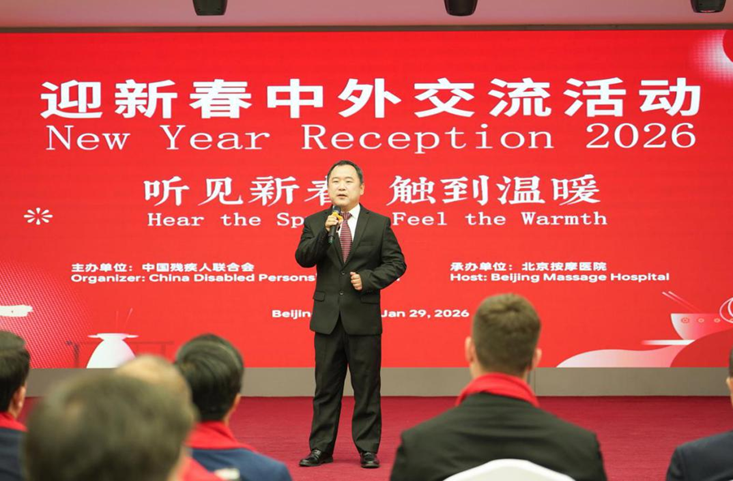 1月29日,中国残联在北京按摩医院举办“听见新春·触到温暖”2026年迎新春中外交流活动。活动现场进行了文艺表演、健康义诊和传统文化展示等,吸引约150名中外嘉宾参加。