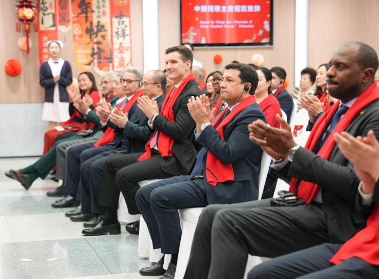 图为1月29日,嘉宾在中国残联2026年迎新春中外交流活动上