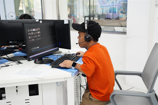 图为商业摄影师(短视频制作)项目参赛选手正在比赛