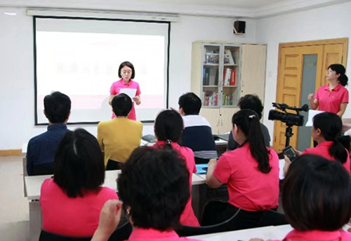 图为赵蕾副主任以一首歌颂教师的老歌词送上“中心”领导们最深的祝福