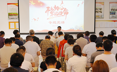 图为赖伟书记讲“不忘初心、牢记使命”专题党课现场