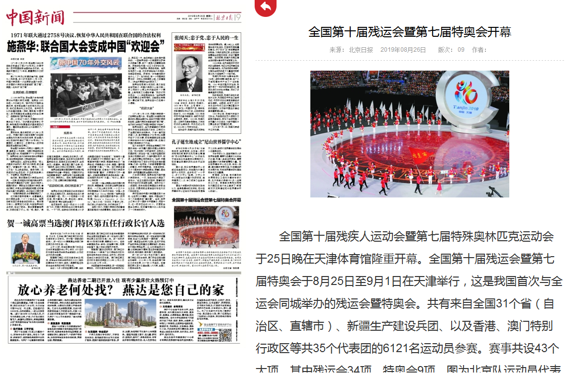 北京日报 第十届残运会暨第七届特奥会在天津开幕