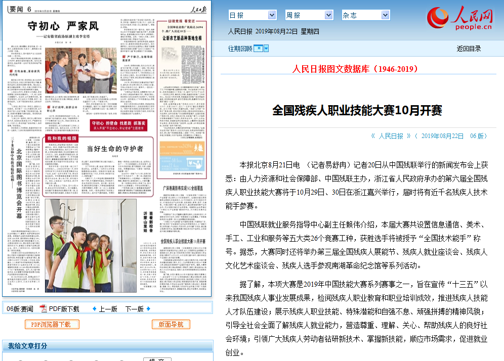 人民日报 全国残疾人职业技能大赛10月开赛