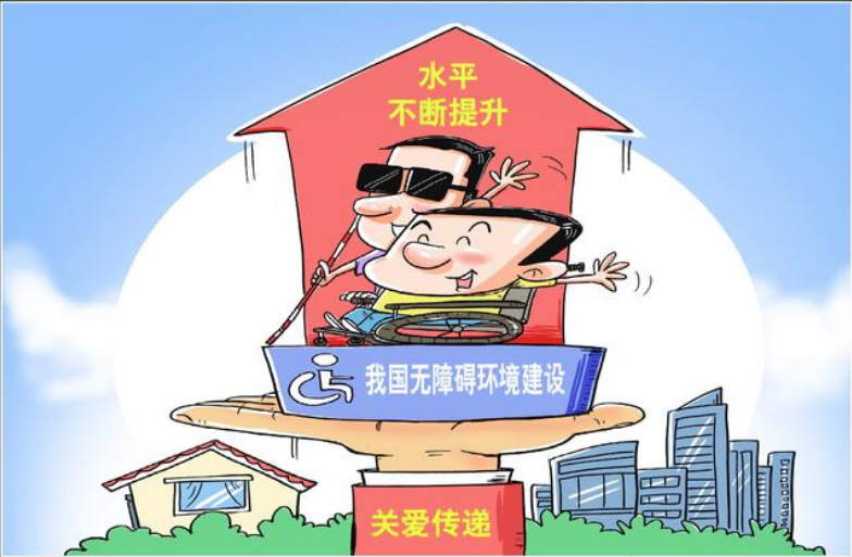新华社图表,北京,2020年8月1日 漫画:不断提升(1) 8月1日是《无障碍环境建设条例》颁布实施8周年。8年来,中国无障碍环境建设不断发展,以法律法规为引领,相关政策与标准体系不断完善,城乡环境、信息交流、人文服务等无障碍水平不断提高。 新华社发 王鹏 作