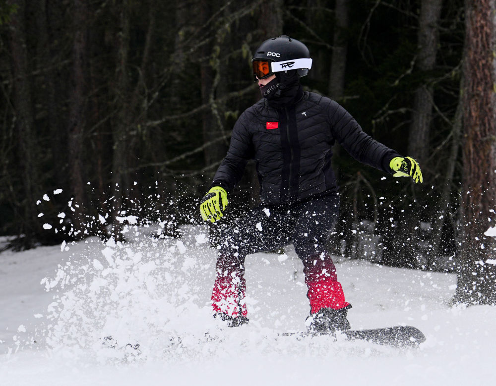 中国残奥单板滑雪队进行赛前训练