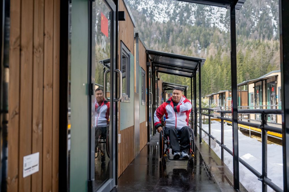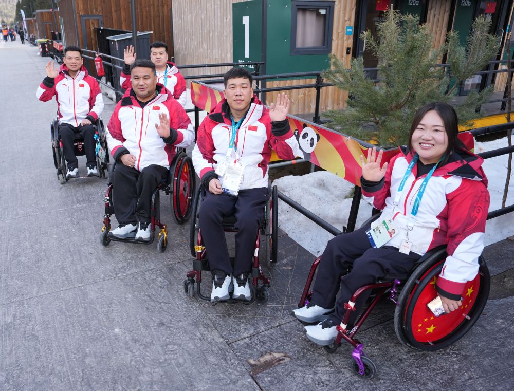 中国残奥冰壶队运动员在残奥村内